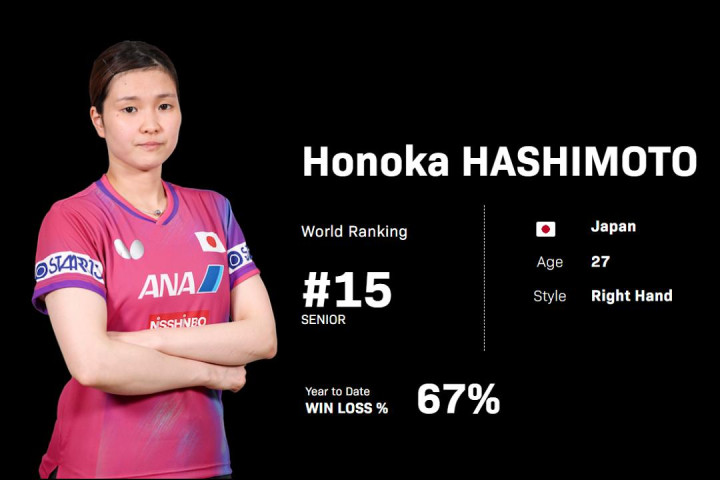相似迎来首秀的还有27岁的桥本帆乃香(Honoka HASHIMOTO,世排15位),她是日本女队中年岁最大的选手,但队内名按序三。