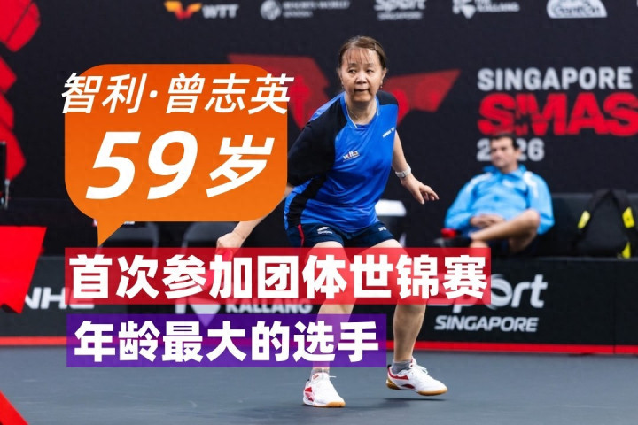 59岁的智利选手曾志英(Zhiying Zeng,现时天下名次149位)是本届伦敦世乒赛团体赛最年长的选手,迎来她的团体世锦赛首秀。